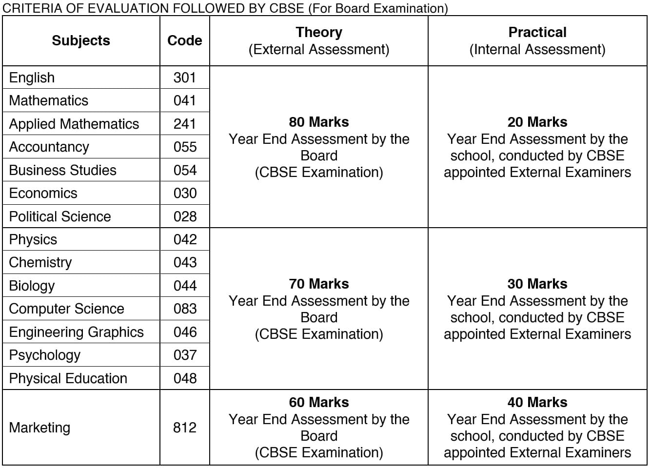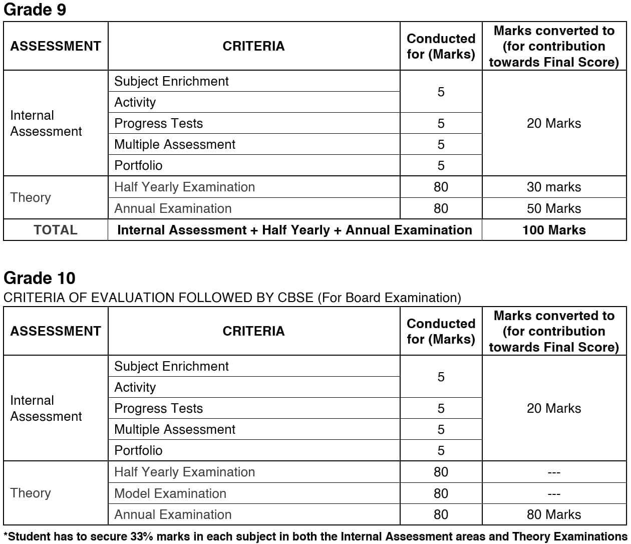 The Central Board of Secondary Examination, Delhi conducts the All India Secondary School Examination at the end of Grade 10 and the All India Senior School Certificate Examination at the end of Grade 12. Candidates for these examinations must have a minimum of 75% attendance and a record of satisfactory academic performance for the continuous assessments in Grades 10 and 12. A student failing in the Grade 10 or Grade 12 Board Examination will not be allowed to continue in the same grade.
